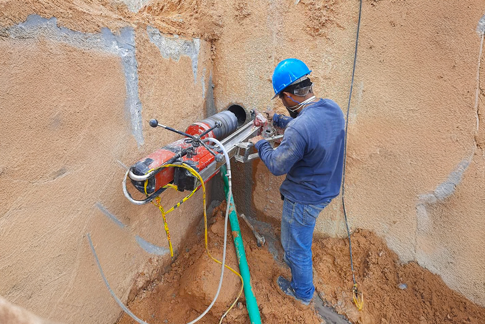 Extracción y fallo de núcleos de concreto y vigas de acero.